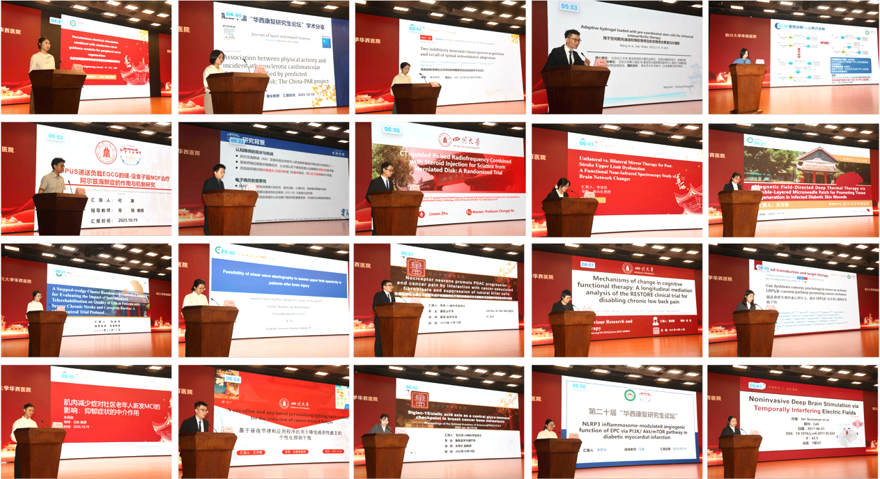 金秋十月,丹桂飘香。2025年10月19日上午8时30分,由四川大学华西临床医学院医学技术学院/四川大学华西临床医学院康复医学院/四川大学华西医院康复医学中心/四川大学华西医院康复医学研究所/康复医学四川省重点实验室主办的第二十届“华西康复研究生论坛”在华西医院厚德楼多功能厅隆重开幕。本届论坛汇聚了康复医学与理疗学、医学技术(康复治疗学)专业的全体硕士研究生、博士研究生及在站博士后。康复医学中心的全体研究生导师及康复医学中心科研骨干共同见证了这一年一度的学术盛会。 开幕式:寄予厚望,砥砺前行 四川大学华西医院康复医学中心学科主任、华西康复医学研究所所长何成奇教授致开幕辞。何教授深切回顾了论坛自2006年创办以来,从仅5名研究生参与发展至如今87人规模(博士后13人、博士29人、硕士45人)的峥嵘历程,充分肯定了论坛作为研究生学术交流、思想碰撞和成果展示平台的重要作用。勉励全体研究生勇于探索科学前沿,追求卓越,并特别强调了“深度阅读”与“勤于记录”的习惯对于夯实科研基础、启迪创新思维的重要意义,寄语同学们珍惜韶华,笃学不倦。 随后,康复医学中心主任魏全教授致辞。他从科研创新的角度出发,鼓励研究生充分利用论坛契机,加强跨领域、跨层级的学术交流与合作,在思想碰撞中迸发灵感。魏全教授对研究生的科研追求提出更高期望,希望大家围绕国家重大战略需求与康复医学前沿难题,开展有组织、有深度的科学研究,力争产出具有影响力的原创成果,为康复学科发展注入新活力。 学术汇报:思维激荡,精彩纷呈 在学术报告环节,由14位导师研究团队遴选的二十名硕、博士研究生以及博士后依次登台,汇报内容覆盖周围神经再生、心血管疾病风险、脊髓损伤修复、肿瘤康复、老年神经功能衰退、疼痛康复、脑损伤后上肢功能重建、肿瘤微环境、心理应激与癌症复发、糖尿病心肌梗死等多个前沿热点领域。报告内容既有对基础机制的纵深探索,也有面向临床的转化研究,充分展现了华西康复研究生扎实的学术功底、严谨的科研态度与活跃的创新思维。 颁奖典礼:表彰先进,树立典范 为激励在科研与学术活动中表现优异的研究生,论坛设立了系列奖项。设立“科研项目杰出贡献奖”与“学术成果杰出贡献奖”,表彰在国自然项目申报与高水平论文发表中表现突出的同学;同时也设置“学术报告奖”对论坛交流的优秀演讲者予以奖励。 薪火相传:班委换届,承前启后 论坛期间,在教学主任杨永红教授的主持下,顺利完成华西康复研究生班委换届工作。新一届班委的产生,标志着研究生团队组织力的传承与焕新,为未来学生工作的有序开展和集体凝聚力的提升奠定了坚实基础。 在论坛闭幕之际,教学主任杨永红教授作总结致辞。她向拨冗莅临的导师、精心准备的学子及默默奉献的会务人员表示衷心感谢,并高度评价了本届论坛所展现的学术水平。号召大家凝心聚力,共同为华西康复事业的跨越式发展贡献才智。本届论坛的成功举办,标志着一段新征程的开始,必将激励全体华西康复人在探索之路上砥砺前行,薪火不熄。 微信扫一扫,阅读更方便^_^ |
