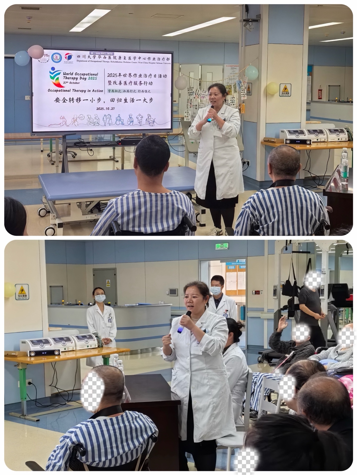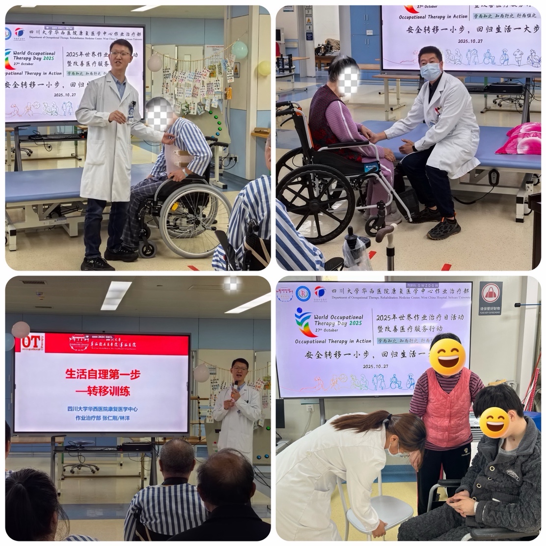 2025年10月27日下午3时30分,四川大学华西医院康复医学中心作业治疗部以“Occupational Therapy in Action——学而知之,知而行之,行而恒之”为主题,在温江院区、华西坝院区、锦江院区、上锦院区、天府院区同步启动“2025年世界作业治疗日”暨改善医疗服务系列活动。活动紧扣“安全转移一小步,回归生活一大步”的实践方向,用专业的康复服务与温暖的人文关怀,为众多患者的康复之路注入了强劲动力,生动诠释了“学而知之,知而行之,行而恒之”的作业治疗理念。 作业治疗师合照 在各院区的活动现场,作业治疗师们早已精心布置好专属场景,将“安全转移”这一核心知识点巧妙融入到与患者的互动治疗中。在锦江院区,治疗师们针对老年患者居多的特点,简化操作步骤,用通俗易懂的语言讲解床椅转移的关键发力点;上锦院区则结合外科术后患者的康复需求,重点演示了借助辅助器具进行安全转移的方法;天府院区通过趣味动画视频,让患者更直观地了解不规范转移可能带来的二次损伤风险。而温江院区和华西坝院区作为本次活动的重点展示区域,更是创新打造了模拟居家、出行的真实生活场景——从卧室的床铺到客厅的沙发,从家门口的台阶到小区的无障碍通道,治疗师们手把手地指导脊髓损伤、偏瘫患者掌握轮椅转移、床椅转移、站立转移等实用技能,每一个动作细节都反复示范,每一个发力要点都耐心讲解,着重强调规范动作对于预防骨折、肌肉拉伤等二次损伤的重要意义。 各院区活动一 各院区活动二 当天下午4时,温江院区作业治疗室大厅内气氛愈发热烈。相较于其他院区的实操教学,温江院区的活动形式更为丰富多元,不仅有专业宣讲、实操演示,还增设了互动竞答环节,吸引了众多患者及家属参与。活动在温馨而庄重的氛围中拉开帷幕,四川大学华西医院康复医学中心教学主任杨永红教授、质控小组组长郭华副教授、脊髓损伤康复病房护士长张建梅副教授、临床治疗师长宗慧燕副教授、作业治疗部主任王凤怡副主任作业治疗师等多位专家嘉宾莅临现场,为活动增添了专业分量。 杨永红教授在开场致辞中,详细阐述了世界作业治疗日的由来与深远意义。她提到,世界作业治疗日设立的初衷,就是为了让更多人了解作业治疗在帮助患者恢复生活能力、回归社会中的重要作用。“作业治疗不是简单的‘动手训练’,而是贯穿患者康复全程的关键一环,从患者卧床期的基础转移,到恢复期的生活自理,再到回归家庭后的社会参与,每一步都离不开作业治疗的专业支持。”杨永红教授强调,患者的主动参与是实现“回归生活”这一终极目标的核心动力,只有患者真正掌握康复技能、树立康复信心,才能在康复之路上走得更稳、更远。 杨主任讲话 郭华教授讲话 宗慧燕教授讲话 张建梅教授讲话 在《生活自理第一步——转移训练》专题宣讲环节,作业治疗师张仁刚与林洋老师结合临床实践,系统讲解了脊髓损伤与偏瘫患者安全转移的步骤、注意事项及常见误区。宣讲过程中穿插有奖竞答互动,现场患者及家属踊跃参与,在轻松的氛围中巩固了知识,也收获了精美礼品。随后治疗师团队分别带领脊髓损伤与偏瘫患者,现场演示了床上移动、床上坐起、床椅转移等关键动作,展示了如何在保障安全的前提下实现高效、省力的转移。患者朋友的勇敢示范赢得了阵阵掌声,他们用实际行动诠释了“从康复到回归”的信念与力量。 张仁刚老师及林洋老师授课 活动接近尾声时,郭华副教授作总结发言。她充分肯定了本次活动的组织成效与临床意义,认为活动成功地将“改善医疗服务行动”的理念融入到实际康复服务中,通过专业的知识宣讲、细致的实操指导和温暖的情感互动,让“安全转移一小步”真正承载起助力患者回归生活、重启人生的深远意义。“康复治疗不仅要帮助患者恢复身体功能,更要关注患者的心理需求,增强他们的康复信心。 现场活动照片 据了解,此次五院区同步开展世界作业治疗日活动,是华西医院康复医学中心作业治疗部深化医疗服务、优化服务模式的一次重要实践。通过专业科普、实操指导、情感联结的“三位一体”服务模式,不仅让患者及家属系统掌握了安全转移等实用康复技能,更传递了“作业治疗助力回归生活”的核心理念。作业治疗部主任王凤怡副主任作业治疗师介绍,下一步,部门将继续以“学、知、行”为指引,深耕作业治疗领域,针对不同患者群体的需求,开发更多个性化康复方案,同时加强多院区协作,通过远程医疗、技术培训等方式,推动优质康复资源下沉,让“安全转移”的一小步,成为更多患者重启美好人生的一大步,为我国康复医疗事业的高质量发展注入华西力量。 活动庆祝 与患者大合照 微信扫一扫,阅读更方便^_^ |