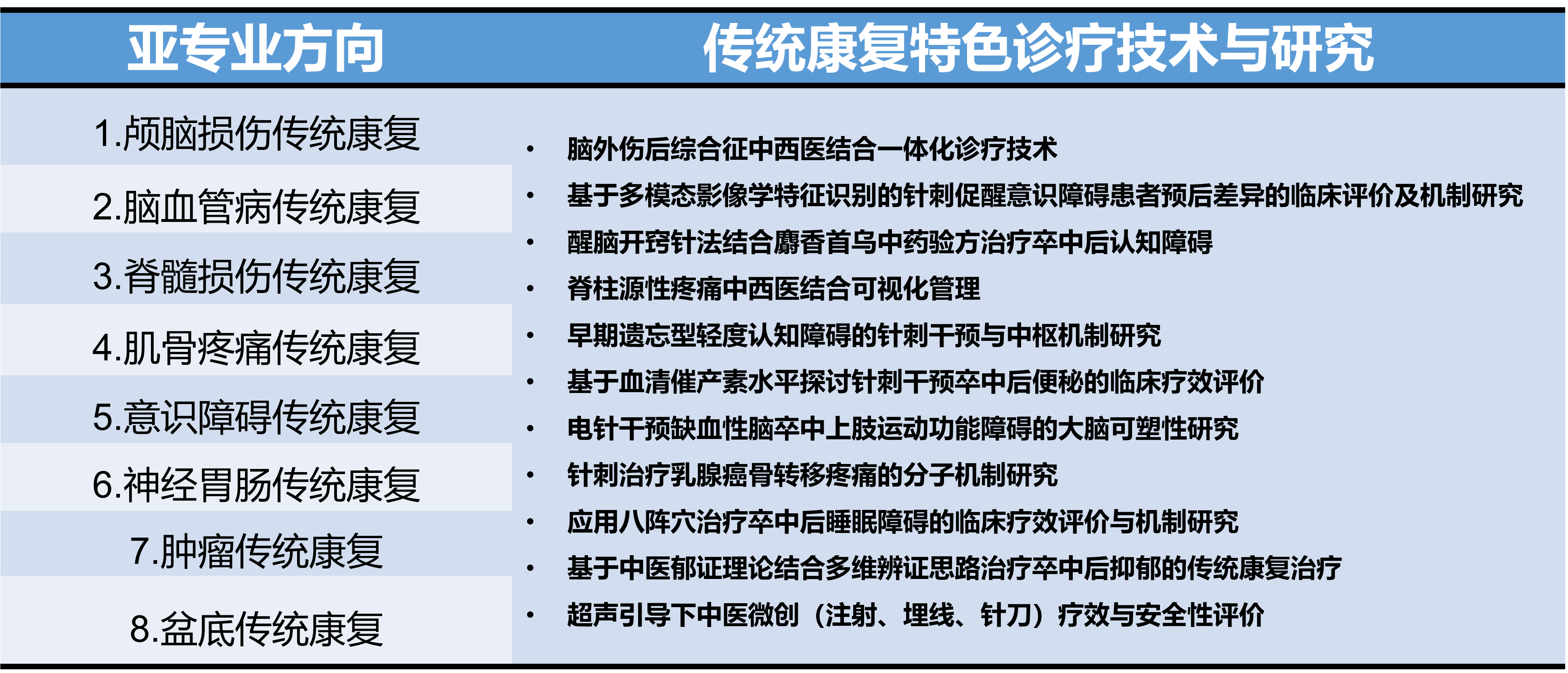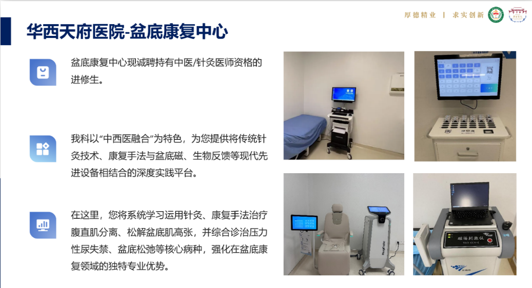 二、部门简介 传统康复部以中医传统治疗技术为核心,融合现代康复医学理论机制与评估方法,确立了以优势病种为导向的专业发展目标,形成了集诊断、评估、治疗与预防为一体的中西医结合规范化康复诊疗体系。 部门现有员工12人,其中高级职称2人,中级6人,博士7人,硕士4人,秉承“宜中则中、宜西则西”的综合康复理念,目前已形成包括意识障碍、颅脑损伤、脑血管病、脊髓损伤、肌骨疼痛、神经胃肠、肿瘤、盆底八个亚专业方向,服务范围覆盖多院区,充分满足患者多样化的康复需求。部门临床诊疗特色鲜明,在稳步推动新技术应用与科研创新的同时,建立了规范的教学体系,为医务人员提供了传统医学与现代康复融合发展的优质培训平台,助力学术交流与专业成长。 三、特色技术介绍 四、传统康复进修要求 1、招生时间及进修时长:每年录取进修生两批次,即春、秋季,进修期限为12个月或6个月。春季(3月初)入学者,1月份录取;秋季(9月初)入学者,6月录取。 2、培养方式:病房轮转学习、专题讲座学习、学科及专业交叉查房学习、疑难病案分析讨论等;提供神经、肌骨对口亚专业方向的轮转学习(现代康复及传统康复联合培养)。 3、结业考核:包括平时轮转成绩和出科统一考试成绩,其中平时成绩60%,出科考试40%。 4、报名条件:具有3年及以上从事传统康复及相关领域工作经验;具有中医医师资格证或中医师承证明等;身心健康、学习态度端正。 五、报名流程及联系方式 网上申报→资质初审→科室复审→择优录取→推送电子通知书→缴纳学费→报到→岗前培训→入科 报名时间:2025年11月15日-12月31日。 报名方式:在线报名:http://202.115.44.69:81/ (主办单位选择“华西医院(临床医疗、医学技术专业)”,进修路径选择“非手术科室”,进修科室选择“康复医学科”,进修专业选择“传统康复治疗(针灸方向)”。) 联系方式:四川大学华西医院进修:028-85422738 康复医学中心:028-86298078 传统康复部:杨老师 18584817570 微信扫一扫,阅读更方便^_^ |